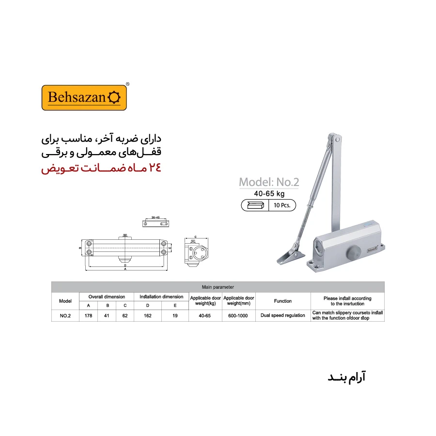 وزن درب :  ۴۰- ۶۵ کیلوگرم